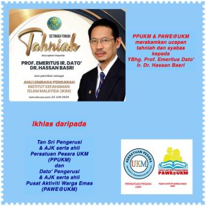 PPUKM & PAWE@UKM merakamkan ucapan tahniah dan syabas kepada YBhg. Prof. Emeritus Dato’ Ir. Dr. Hassan Basri
