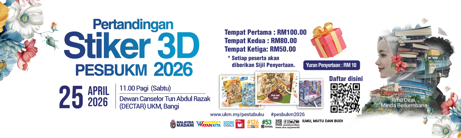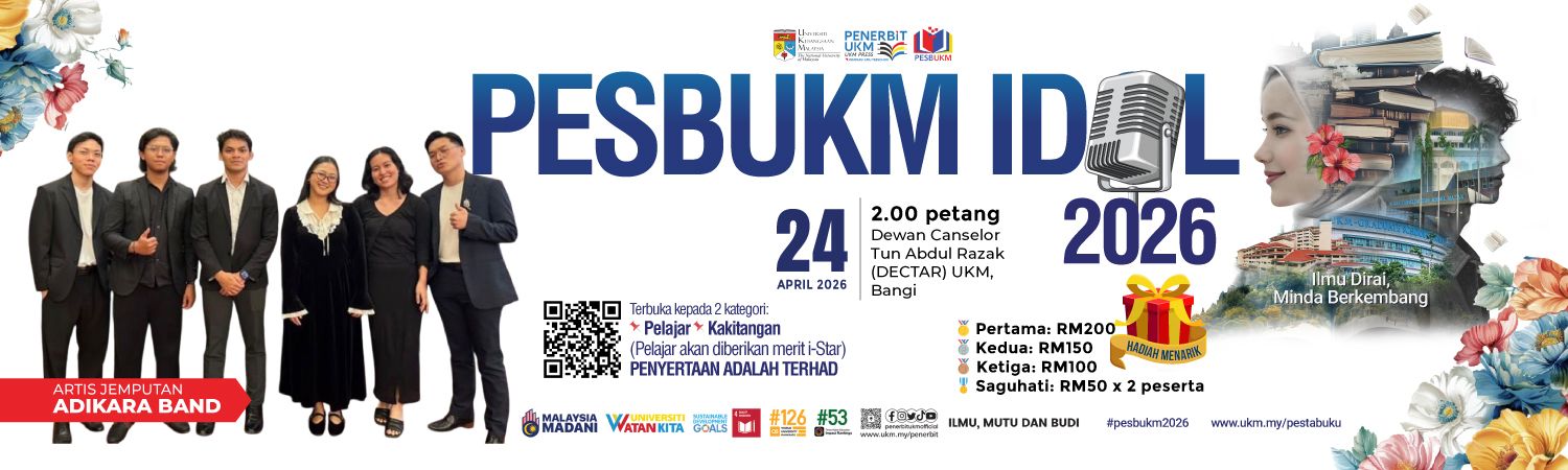 Pesta Buku UKM 2026 juga diharapkan dapat menjadi wadah untuk memperkenalkan hasil penerbitan universiti kepada masyarakat luas serta memperkukuh jaringan kerjasama strategik antara institusi pengajian tinggi, penerbit tempatan, agensi kerajaan dan pihak industri. Melalui usaha ini, Penerbit UKM berhasrat untuk terus memainkan peranan aktif dalam menyumbang kepada perkembangan budaya ilmu dan industri penerbitan negara.