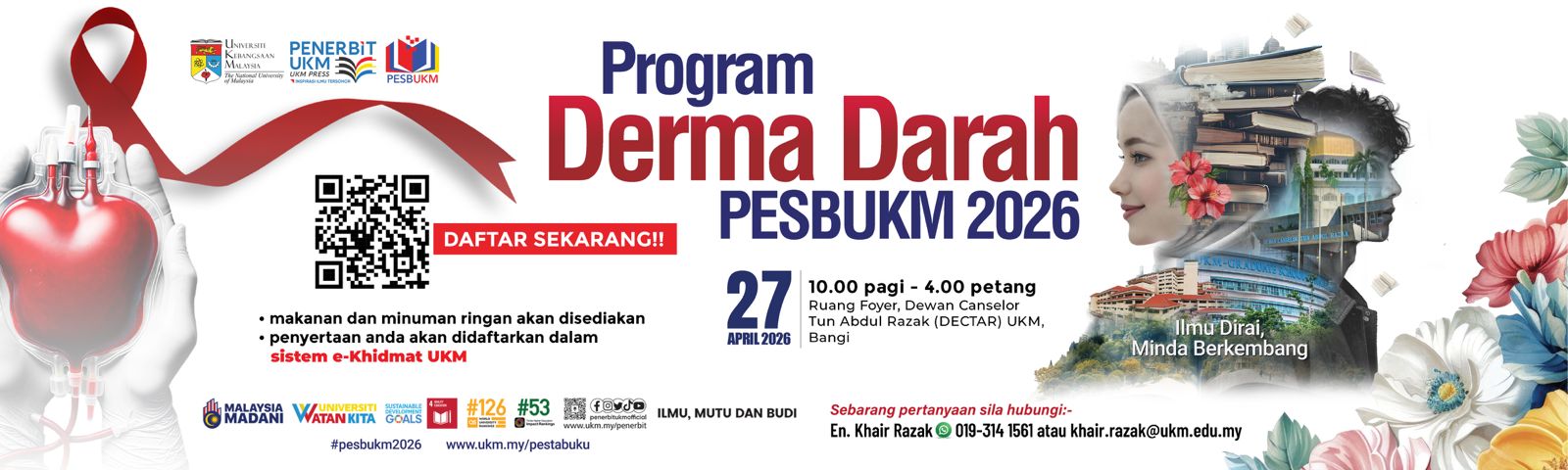 Pesta Buku UKM 2026 juga diharapkan dapat menjadi wadah untuk memperkenalkan hasil penerbitan universiti kepada masyarakat luas serta memperkukuh jaringan kerjasama strategik antara institusi pengajian tinggi, penerbit tempatan, agensi kerajaan dan pihak industri. Melalui usaha ini, Penerbit UKM berhasrat untuk terus memainkan peranan aktif dalam menyumbang kepada perkembangan budaya ilmu dan industri penerbitan negara.