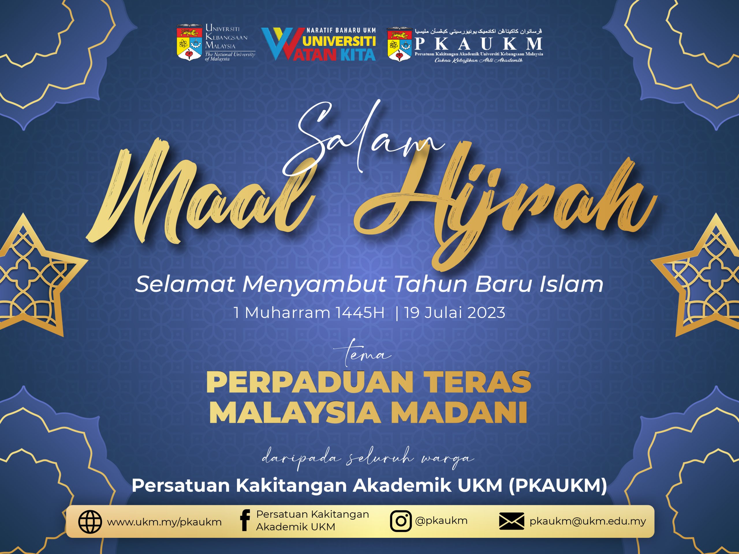 Persatuan Kakitangan Akademik UKM (PKAUKM) mengucapkan Selamat Menyambut Ma’al Hijrah 1445H / 2023M