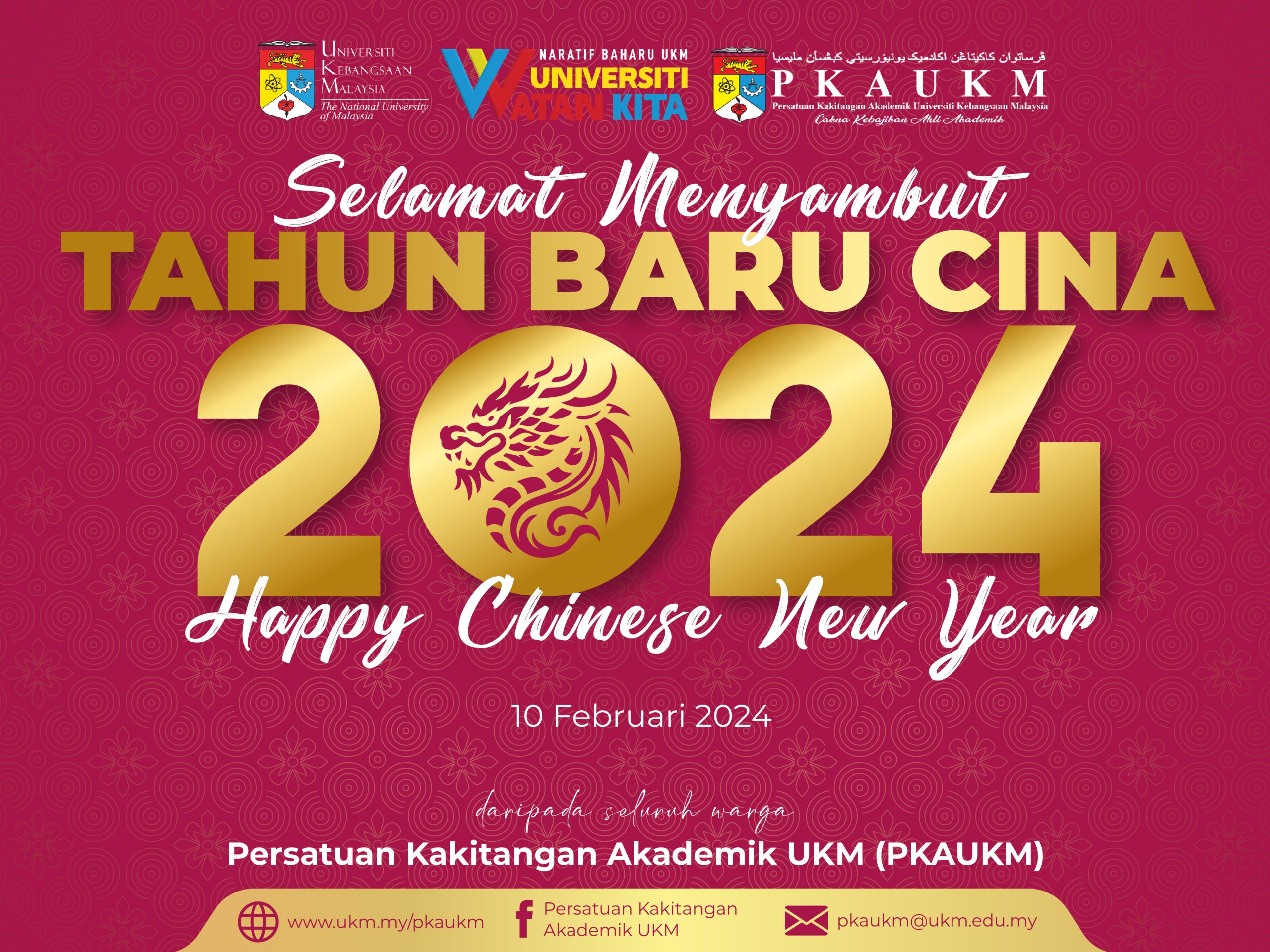 Persatuan Kakitangan Akademik UKM (PKAUKM) mengucapkan Selamat Menyambut Tahun Baru Cina kepada mereka yang menyambutnya.