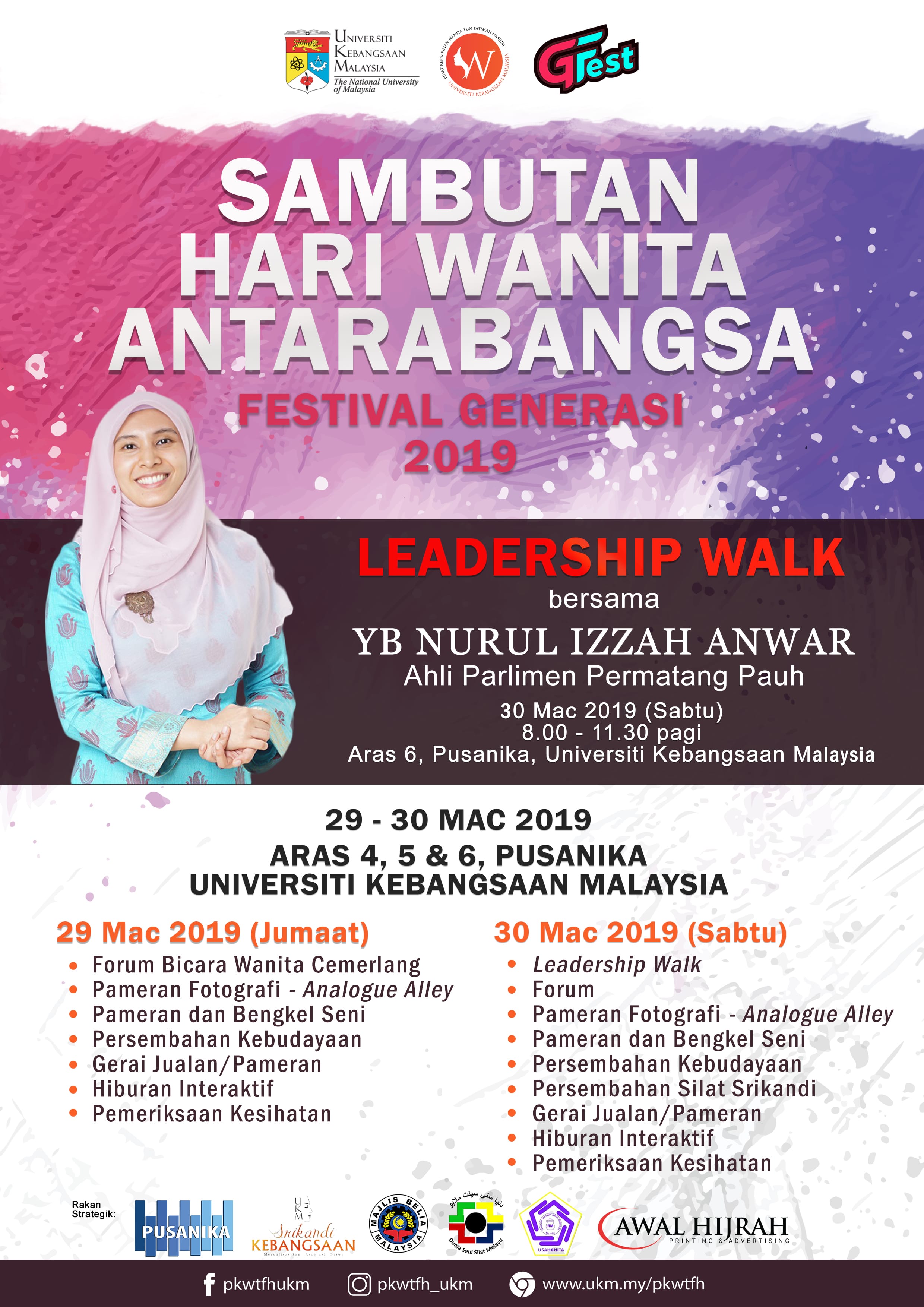 Sambutan Hari Wanita Antarabangsa 2019 Festival Generasi 2019 Pusat Kepimpinan Wanita Tun Fatimah Hashim akan menganjurkan program Leadership Walk, iaitu satu acara berjalan secara santai…