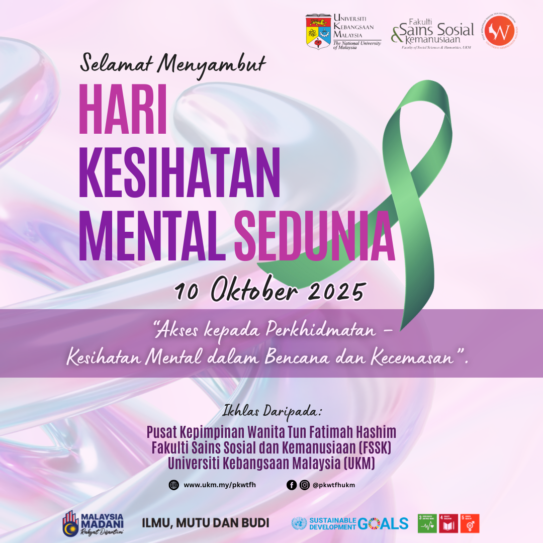 In conjunction with this year’s theme — “Access to Services: Mental Health in Disasters and Emergencies”, the Tun Fatimah Hashim Women’s Leadership Centre (PKWTFH) calls on everyone to continue strengthening systems of support and empathy towards mental well-being, especially during challenging times.