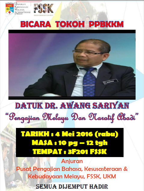 Anjuran : Pusat Pengajian Bahasa, Kesusasteraan & Kebudayaan Melayu, FSSK, UKM