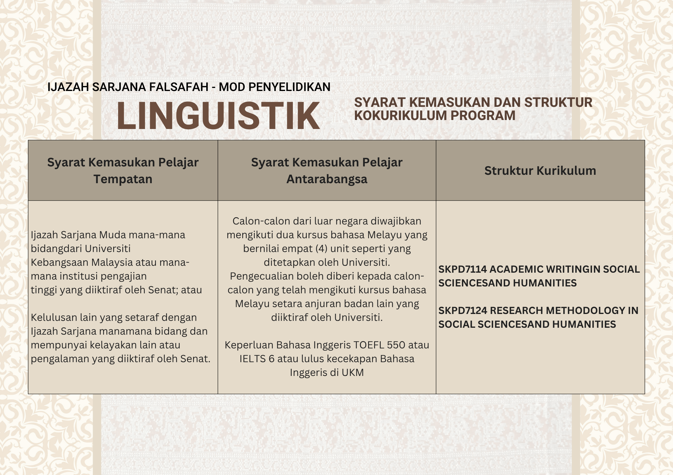SYARAT KEMASUKAN DAN STRUKTUR KURIKULUM PROGRAM SISWAZAH FAKULTI SAINS SOSIAL DAN KEMANUSIAAN