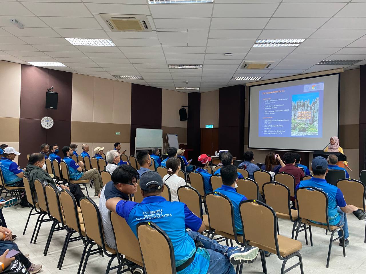 LANGKAWI, 21 Oktober 2022 – Bersempena dengan 34th National Geoscience Conference (NGC), Persatuan Geologi Malaysia (GSM) dengan kerjasama Jabatan Mineral dan Geosains (JMG) dan Institut Geologi Malaysia (IGM) beserta kolaborasi bersama universiti-universiti tempatan dan Lembaga Pembangunan Langkawi (LADA), telah menganjurkan persidangan bertaraf antarabangsa iaitu 17th Regional Geoscience Congress of Southeast Asia (XVII GEOSEA 2022/ GEOSEA 2022). Persidangan yang dirasmikan oleh Tuan Haji Shamsul Shahril Badliza Mohd Noor, Pejabat Setiausaha Bahagian Kanan (Mineral dan Geosains), Kementerian Tenaga dan Sumber Asli ini telah dihadiri oleh pakar-pakar daripada pelbagai bidang bagi membicarakan isu-isu berkaitan geosains dan geoteknologi di rantau Asia Tenggara. Semasa persidangan ini, Pusat Penyelidikan Langkawi (PPL-UKM) telah dijadikan salah satu lokasi bagi lawatan lapangan (Mid-congress Field Excursion). PPL-UKM juga turut dijemput sebagai pempamer ketika persidangan ini berlangsung.