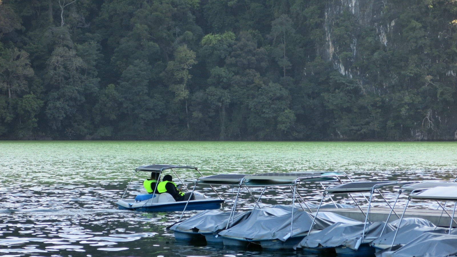 Berpeluang menaiki bot solar yang disewakan kepada pelancong.