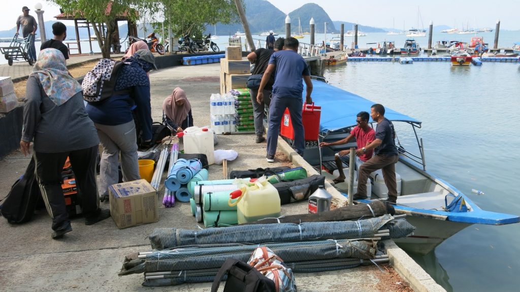 Menaiki bot di Jeti Pelancongan Pekan Rabu, Kuah, bagi perjalanan ke Tasik Dayang Bunting.