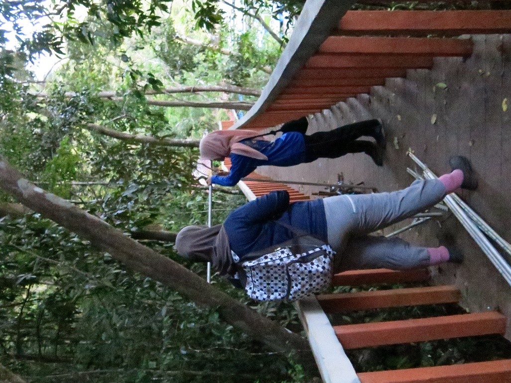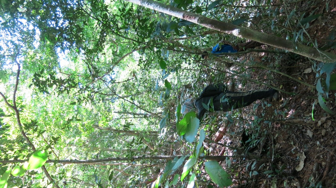 Mendaki bukit untuk mencari kawasan-kawasan gua yangmana berpotensi bagi penangkapan kelawar.