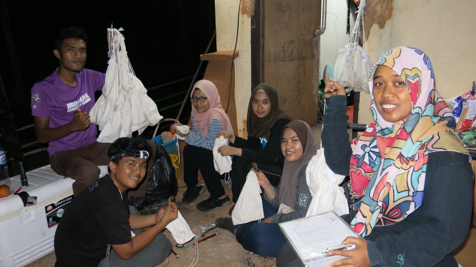 Sesi perkongsian ilmu berkaitan penyelidikan kelawar di lapangan dikongsikan bersama oleh penyelidik.
