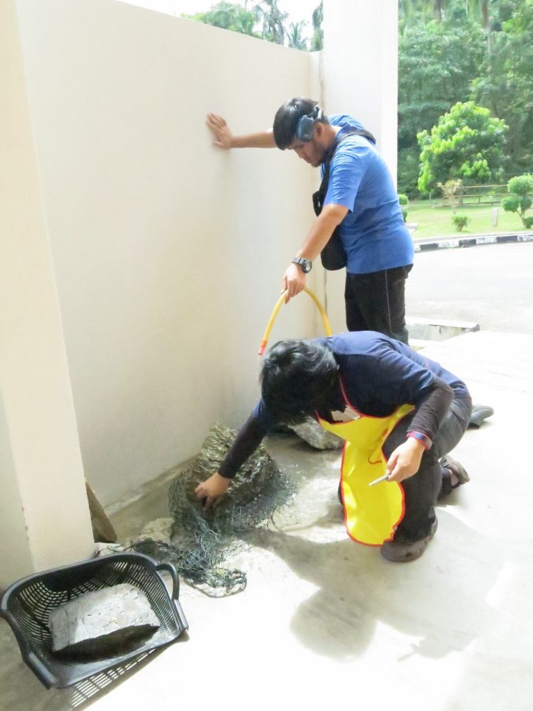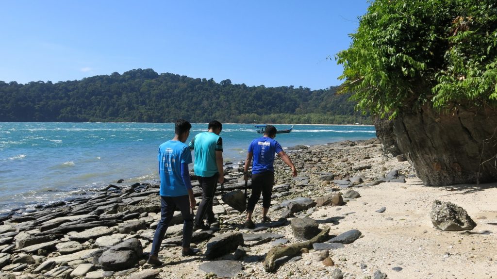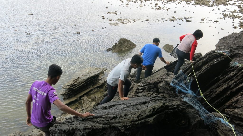 Persampelan batuan kapur Formasi Chuping di Pulau Singa Kecil.