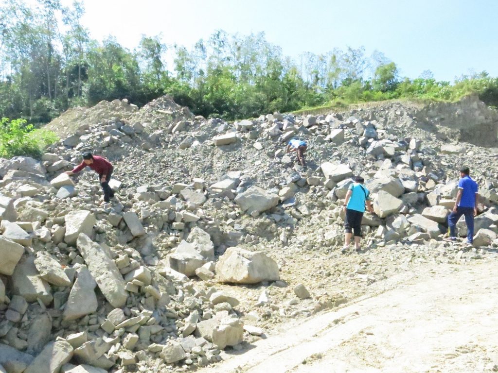 Persampelan batuan granit di Kuari Gemi Puncak, Jalan Ulu Melaka, Langkawi.
