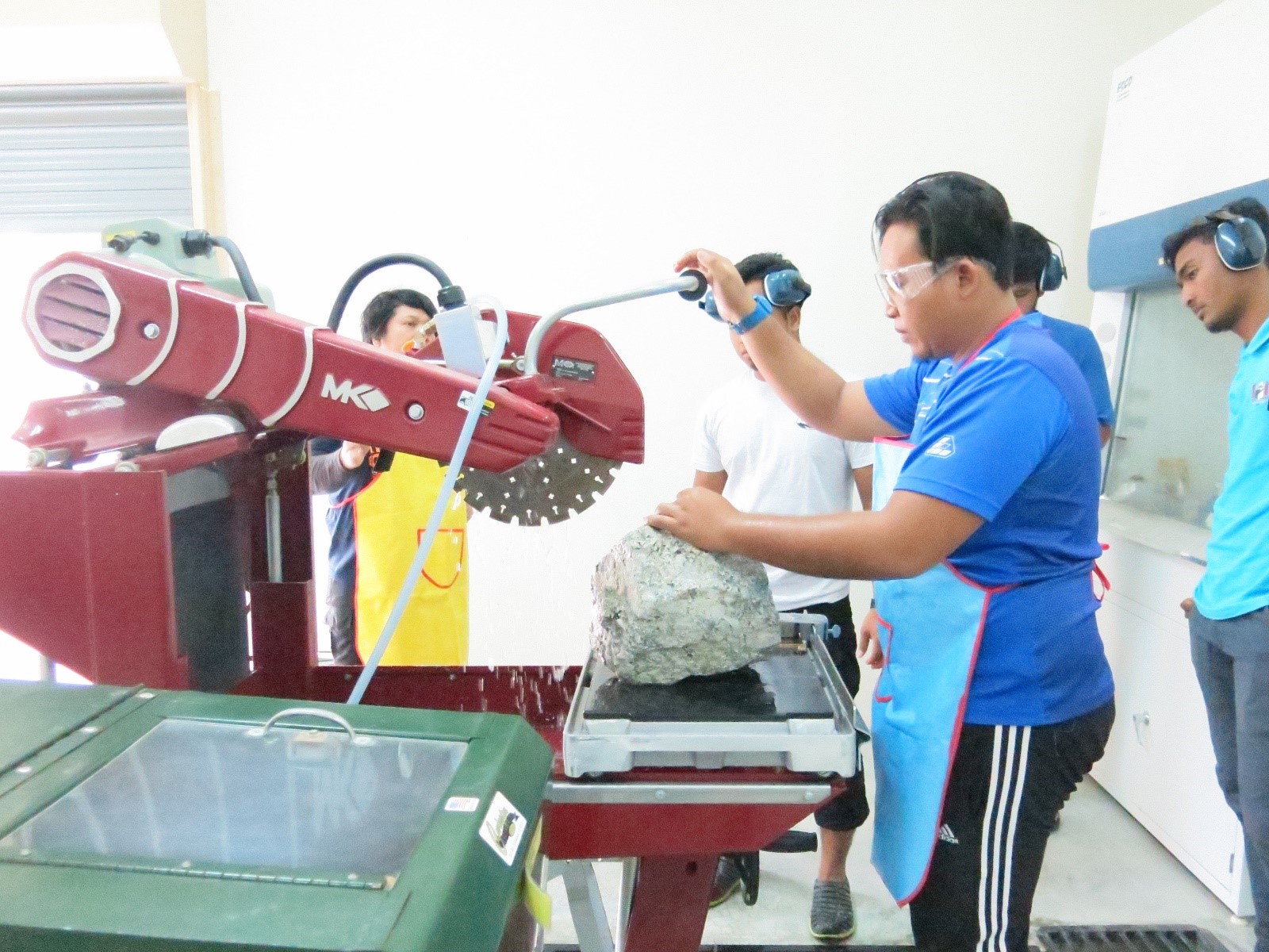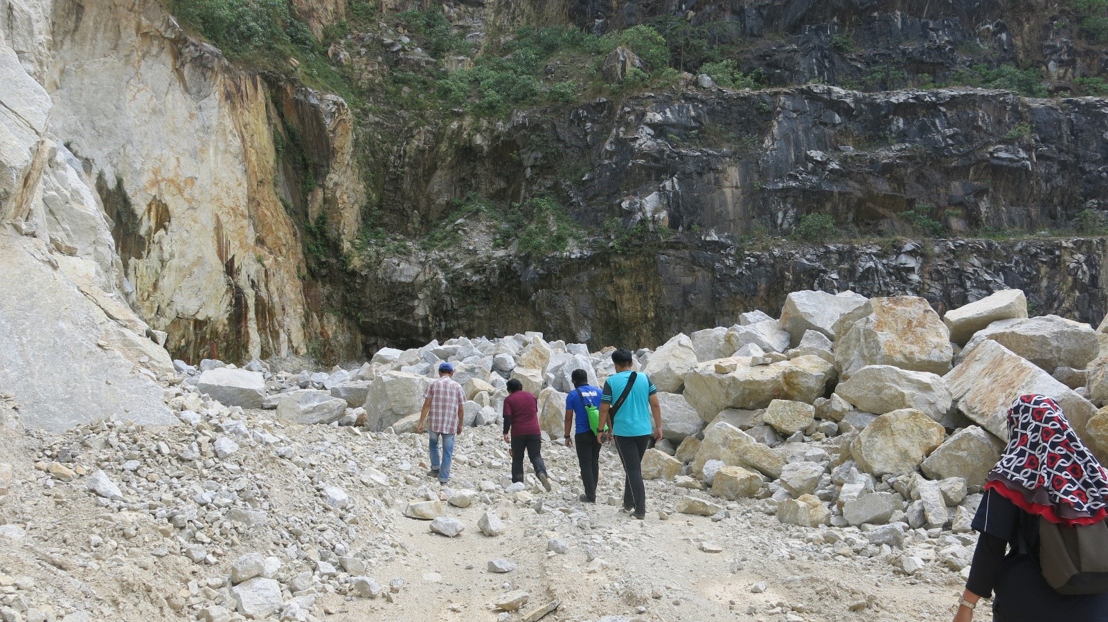 Persampelan batuan granit di Kuari Gemi Puncak, Jalan Ulu Melaka, Langkawi.