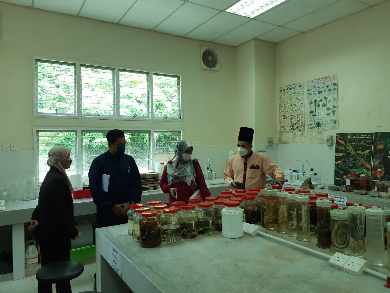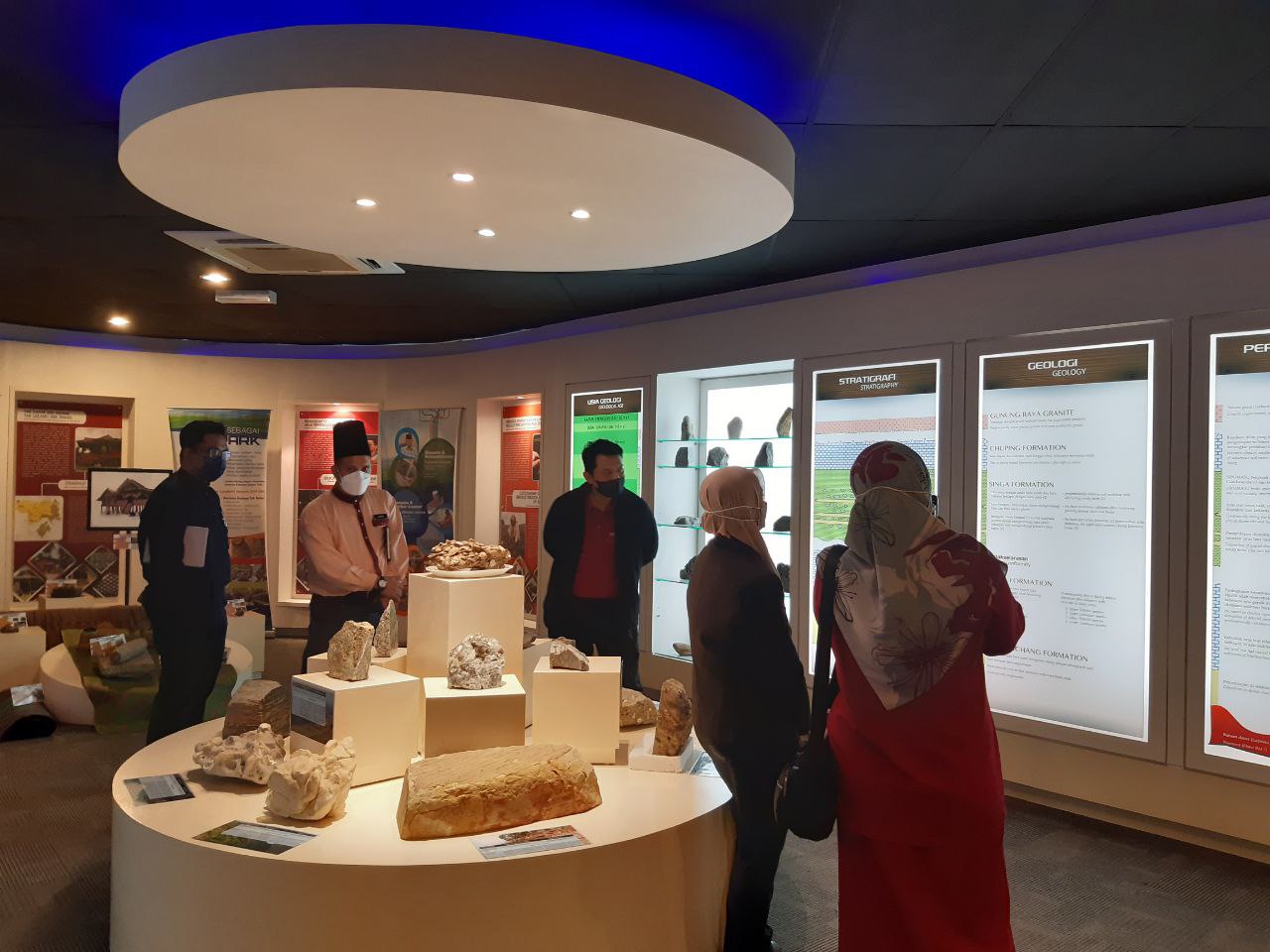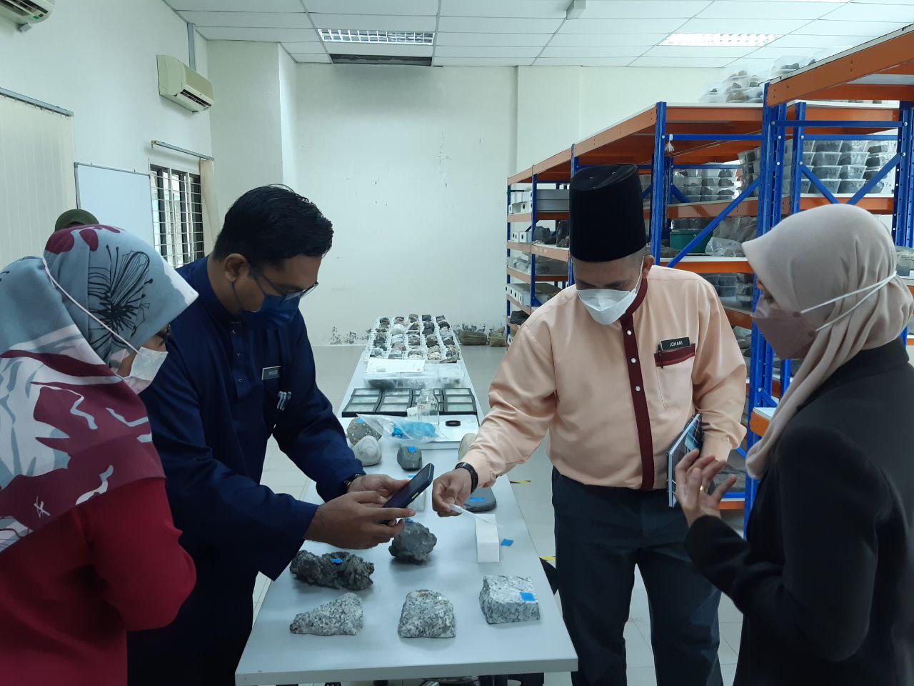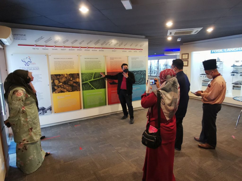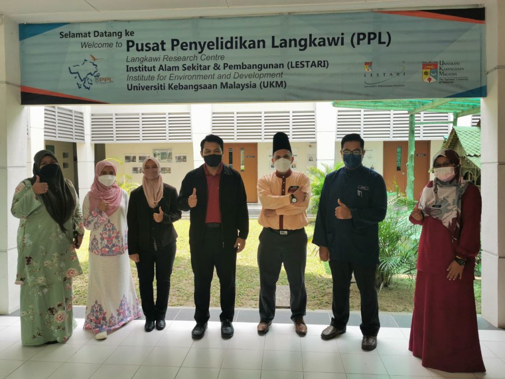 LANGKAWI, 11 April 2022 – Pusat Penyelidikan Langkawi (PPL-UKM) telah menerima kunjungan mesra oleh wakil guru daripada Sekolah Kebangsaan Kilim (SK Kilim), iaitu Ustaz Johari Abdullah (Penolong Kanan Kokurikulum), Ustaz Muhammad Naguib Ahmad dan Cikgu Safiah Saridan. Tujuan kunjungan ini adalah bagi mendapatkan bimbingan dan maklumat tentang Langkawi UNESCO Global Geopark (LUGGp) dalam usaha menjadikan SK Kilim sebagai sebuah sekolah contoh, iaitu “Sekolah Geopark” di LUGGp. Wakil-wakil guru yang hadir diberikan penerangan dan perkongsian maklumat menerusi pembentangan ringkas, serta dibawa melawat ke galeri dan makmal bagi mendedahkan tentang gambaran secara menyeluruh tentang geopark serta peranan PPL-UKM dalam hal ehwal penyelidikan dan pembangunan LUGGp.