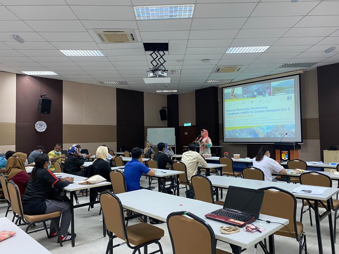 Pada 5 Januari yang lalu, seramai 30 orang peserta daripada kalangan pemandu pelancong Langkawi dan kakitangan-kakitangan yang terlibat secara langsung dalam industri geopelancongan di Langkawi telah mengikuti Kursus Pemandu Pelancong Langkawi UNESCO Global Geopark (LUGGp) Siri 2: Geotrail Kars Kilim. Kursus yang dianjurkan oleh SKUM, LADA dan PPL-UKM ini adalah merupakan sebahagian daripada siri Modul Latihan LUGGp oleh PPL-UKM untuk memperkenalkan produk geopelancongan berkualiti bagi membolehkan maklumat tentang warisan terintegrasi geologi, biologi dan budaya digunakan secara lestari. Kursus ini terbahagi kepada dua slot iaitu penyampaian kuliah di Auditorium KTAHMS-UKM pada sesi pagi serta lawatan dan kerja lapangan di kawasan-kawasan geotapak di Georimba Kars Kilim Langkawi. Penyampaian kuliah adalah merangkumi ketiga-tiga aspek utama beserta pendidikan awam yang disampaikan oleh pakar-pakar penyelidik UKM iaitu Prof. Emeritus Dato’ Dr. Ibrahim Komoo (Geologi dan Geopark), Prof. Dr. Norhayati Ahmad (Biologi), Dr. Sharina Abdul Halim (Budaya) dan Prof. Dato’ Dr. Norzaini Azman (Pendidikan). Kursus diakhiri dengan penyampaian sijil kepada peserta-peserta yang berjaya menamatkan latihan.