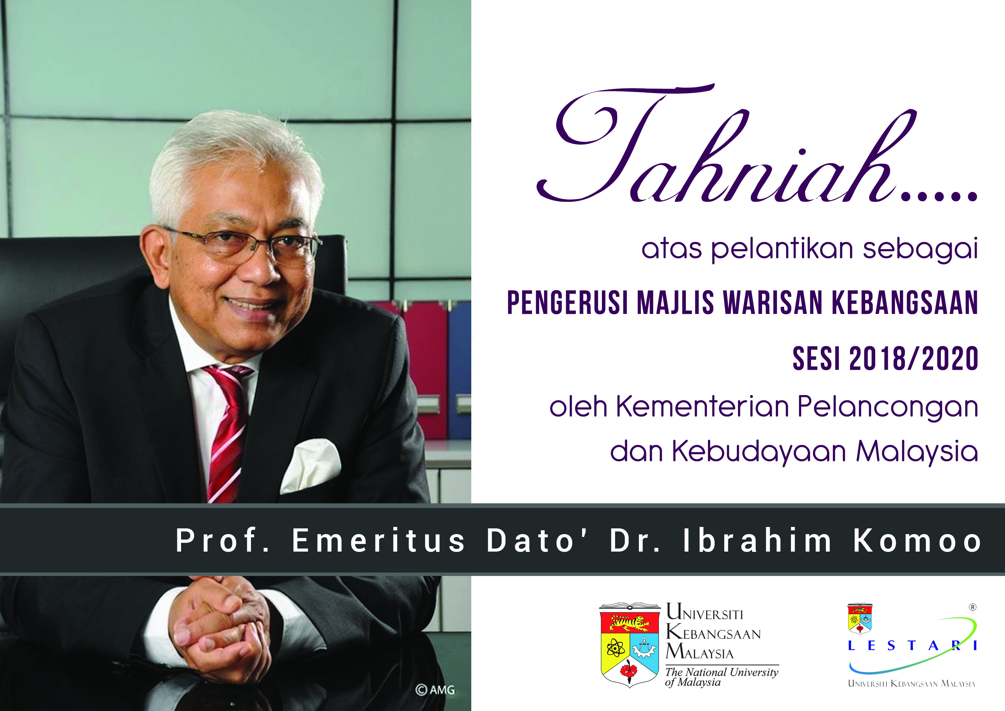 Tahniah diucapkan kepada YBhg. Prof. Emeritus Dato` Dr. Ibrahim Komoo yang telah dilantik sebagai Pengerusi Majlis Warisan Kebangsaan bagi Sesi 2018-2020 (1 April 2018 hingga…
