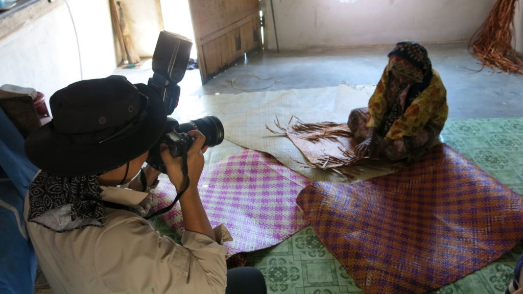 Menganyam tikar mengkuang merupakan salah satu kegiatan ekonomi penduduk tempatan.