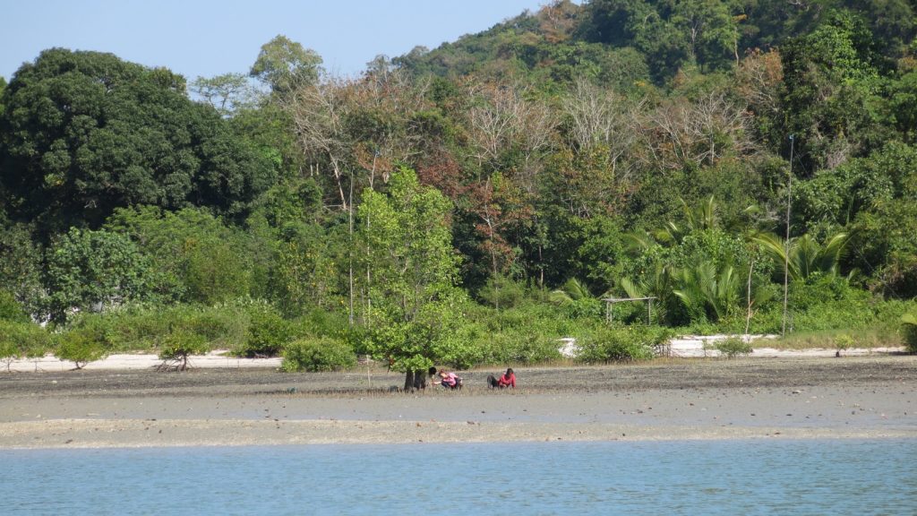 Nelayan-nelayan tempatan sedang mencari siput ganyam.