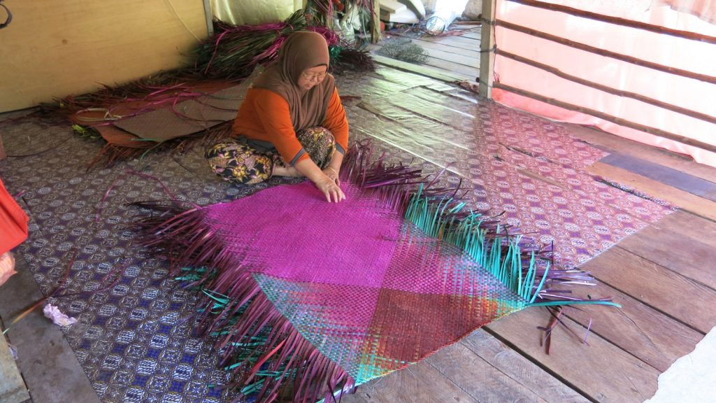 Menganyam tikar mengkuang merupakan salah satu kegiatan ekonomi penduduk tempatan.