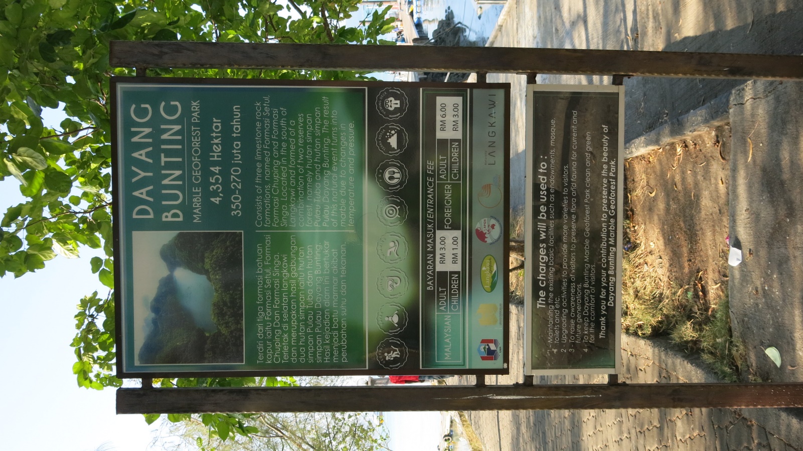 Papan informasi yang terdapat di Jeti Pelancongan Pekan Rabu berkenaan Pulau Dayang Bunting.