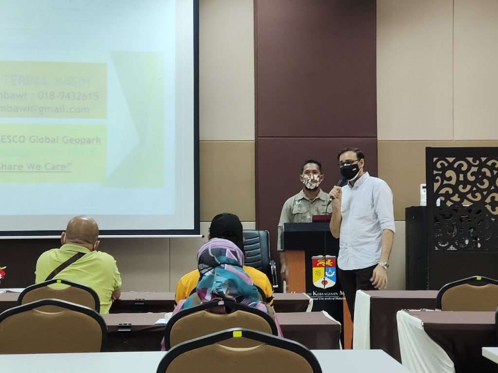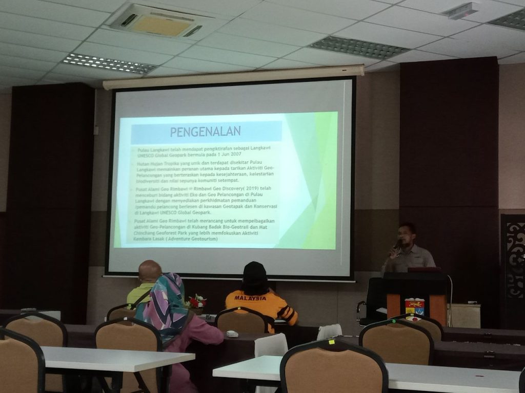 Bertempat di Pusat Penyelidikan Langkawi (PPL) UKM Kampus Tuanku Abdul Halim Mu’adzam Shah (KTAHMS), satu taklimat berkenaan produk geo-pelancongan telah disampaikan oleh Encik Othman bin Ayeb (Felo Bersekutu PPL-UKM) pada 15 Disember 2021 yang lalu. Taklimat yang disertai oleh wakil-wakil daripada pelbagai agensi swasta dan kerajaan, rakan-rakan strategik serta pemandu-pemandu pelancong ini adalah bertujuan bagi mempelbagaikan aktiviti-aktiviti geo-pelancongan di Langkawi UNESCO Global Geopark (LUGGp), khususnya di Taman Georimba Machinchang Kambria termasuklah di kawasan Jeti Pelancongan Kubang Badak atau lebih dikenali sebagai BioGeoTrail Kubang Badak. Setelah sesi taklimat berakhir, para peserta dibawa melawat ke Galeri Penyelidikan PPL-UKM.