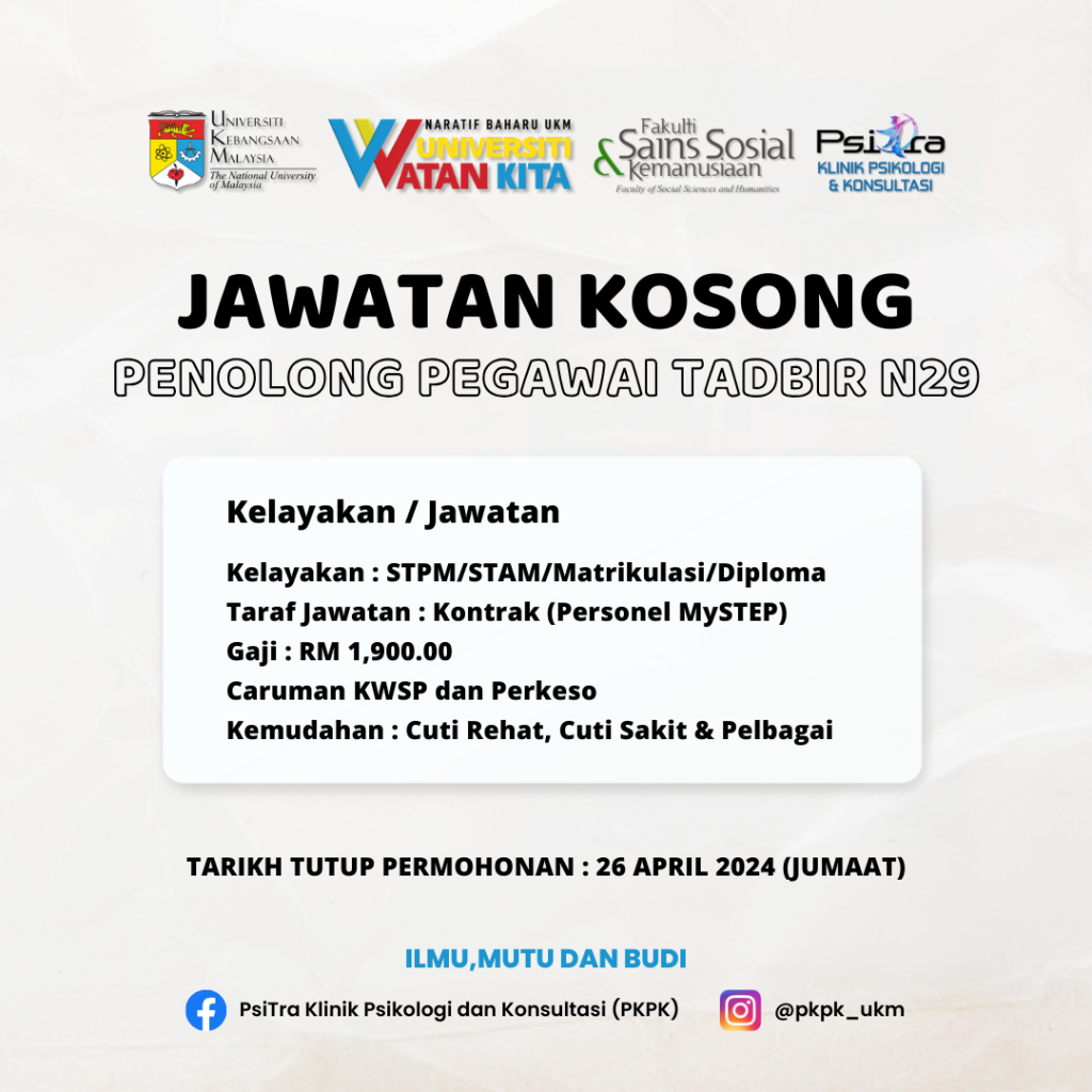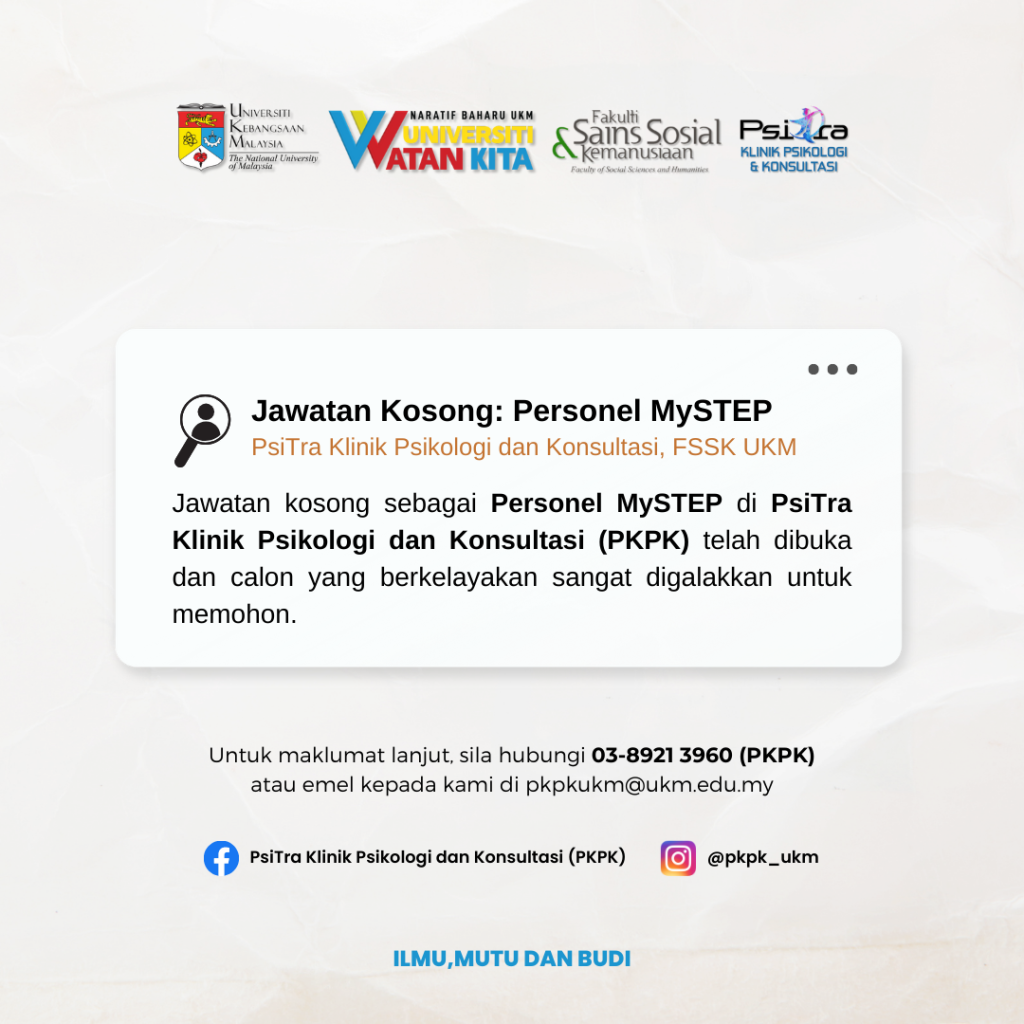 Placement: PsiTra Psychology and Consultation Clinic (PKPK), Faculty of Social Sciences and Humanities, The National University of Malaysia.