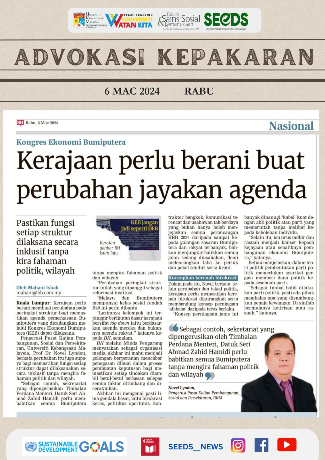 YBhg. Prof Dr. Novel Lyndon, Pengerusi Pusat Kajian Pembangunan, Sosial dan Persekitaran (SEEDS), mengadakan satu perjumpaan ilmiah bersama-sama sekumpulan pensyarah muda SEEDS.