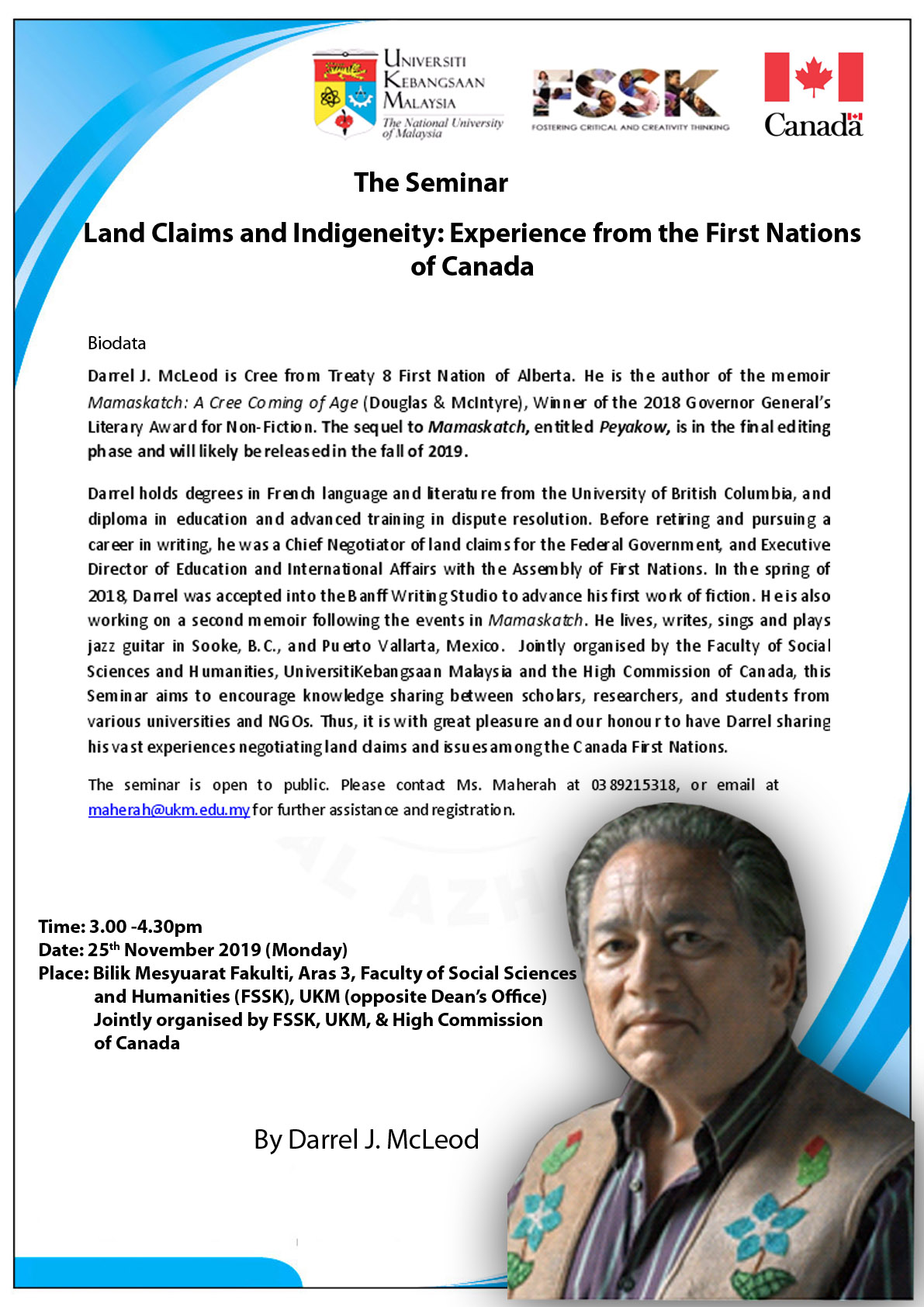 Penganjur Bersama : Organised by FSSK, UKM & High Commission of Canada