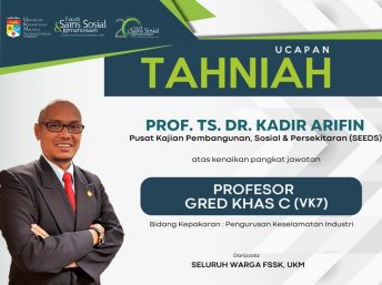 Warga pusat pengajian mengucapkan Tahniah kepada Prof. Ts. Dr. Kadir Arifin atas kenaikan pengkat ke jawatan Profesor Gred Khas C (VK7) dengan bidang kepakaran Pengurusan …