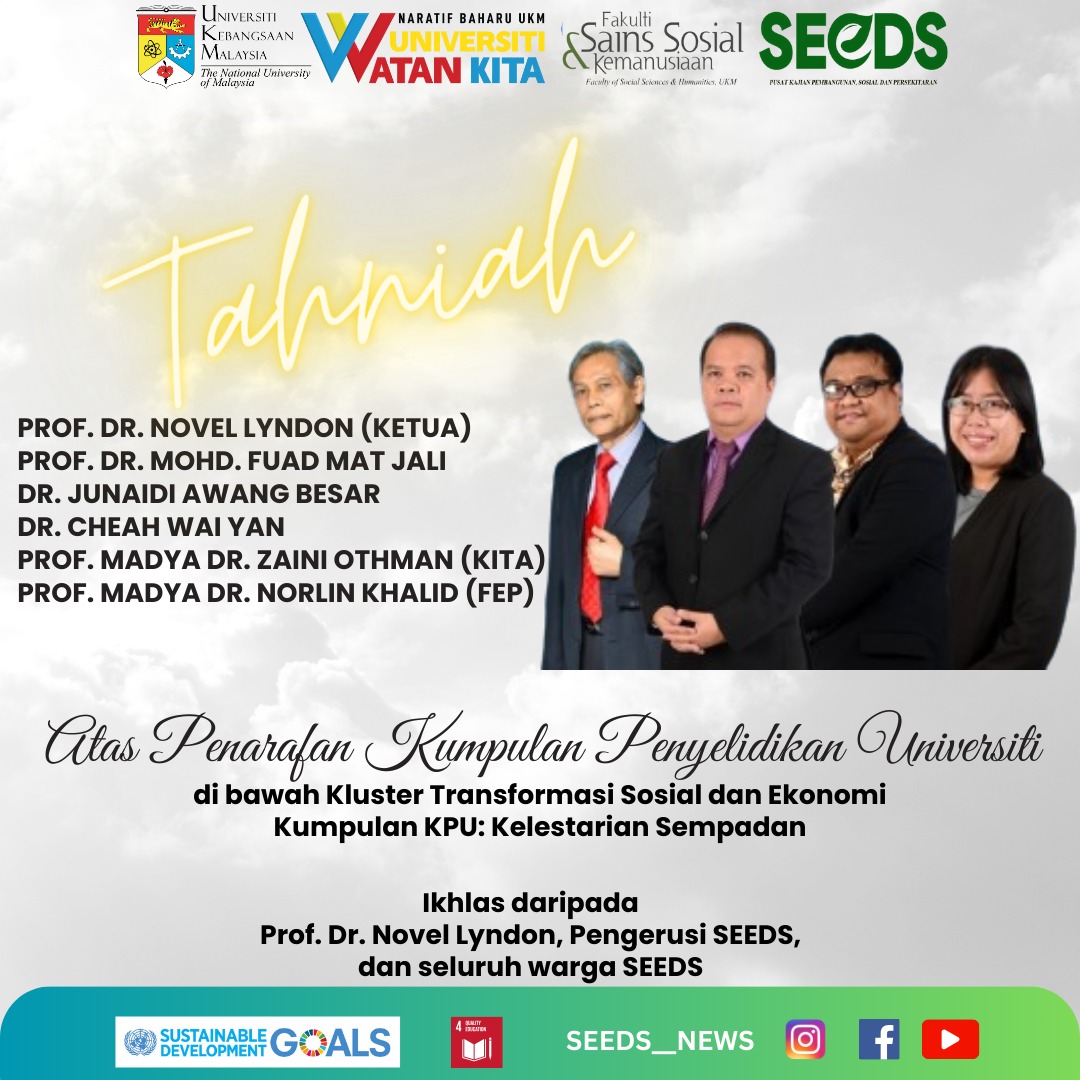 “TAHNIAH ATAS KEJAYAAN PENARAFAN KUMPULAN PENYELIDIKAN UNIVERSITI” Ucapan Tahniah atas kejayaan penarafan kumpulan Penyelidikan Universiti (KUP) UKM di bawah Kluster Transformasi Sosial dan Ekonomi. KUMPULAN KPU : KELESTARIAN SEMPADAN.