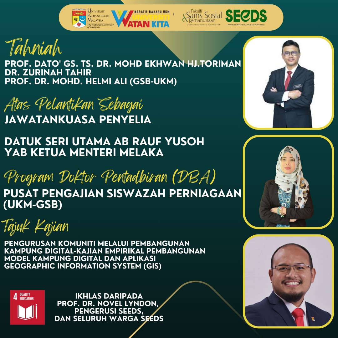 “TAHNIAH ATAS PELANTIKAN SEBAGAI JAWATANKUASA PENYELIA”