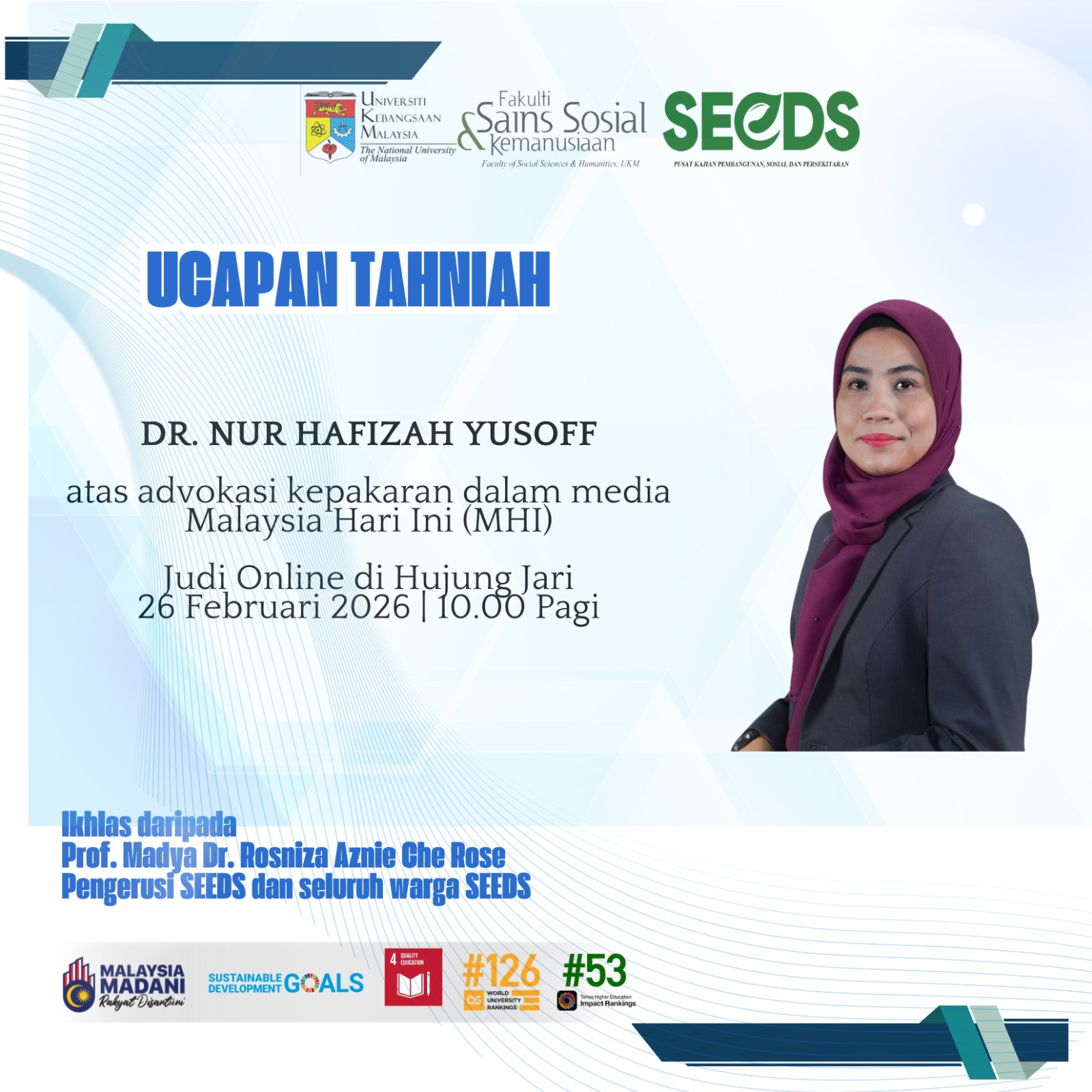 “TAHNIAH KEPADA DR. NUR HAFIZAH YUSOFF”