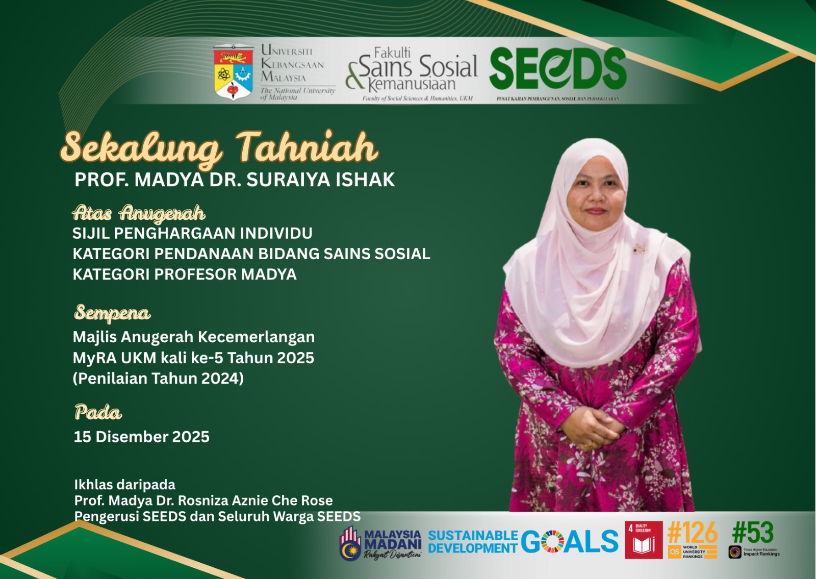 “TAHNIAH KEPADA PROF. MADYA DR. SURAIYA ISHAK”