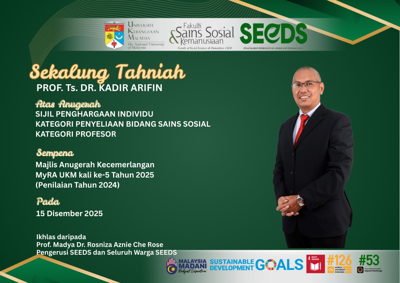 “TAHNIAH KEPADA PROF. TS. DR. KADIR ARIFIN”