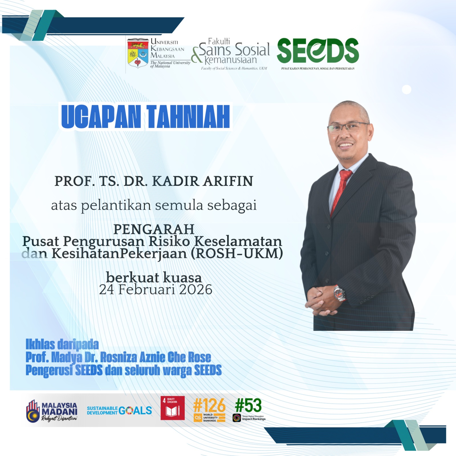 “TAHNIAH KEPADA PROF. TS. DR. KADIR ARIFIN”