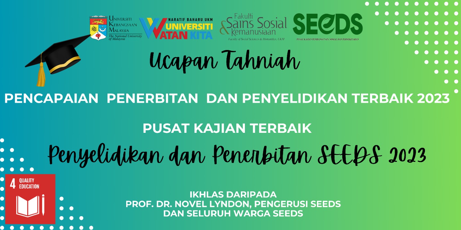 TAHNIAH PENGIKTIRAFAN PUSAT KAJIAN TERBAIK 2023 *Sekalung Penghargaan dan Ucapan Tahniah* kepada seluruh warga akademik SEEDS atas pengiktirafan bagi kategori *Pusat Kajian Terbaik*. Semoga terus melakar kecemerlangan. Ilmu, Mutu & Budi.