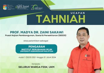 TAHNIAH diucapkan kepada Prof. Madya Dr. Zainee Sakawi atas pelantikan sebagai Pengarah, Institut Perubahan Iklim (IPI), UKM berkuatkuasa 1 Ogos 2021. Syabas semoga terus menabur bakti serta meningkatkan lagi kecemerlangan dan tahap pencapaian Institut Perubahan Iklim (IPI) UKM.