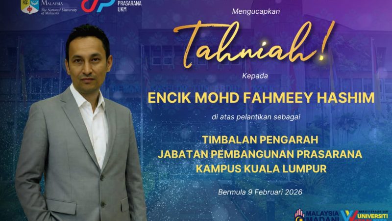 TAHNIAH KEPADA ENCIK MOHD FAHMEEY HASHIM DI ATAS PELANTIKAN SEBAGAI TIMBALAN PENGARAH JABATAN PEMBANGUNAN PRASARANA KAMPUS KUALA LUMPUR