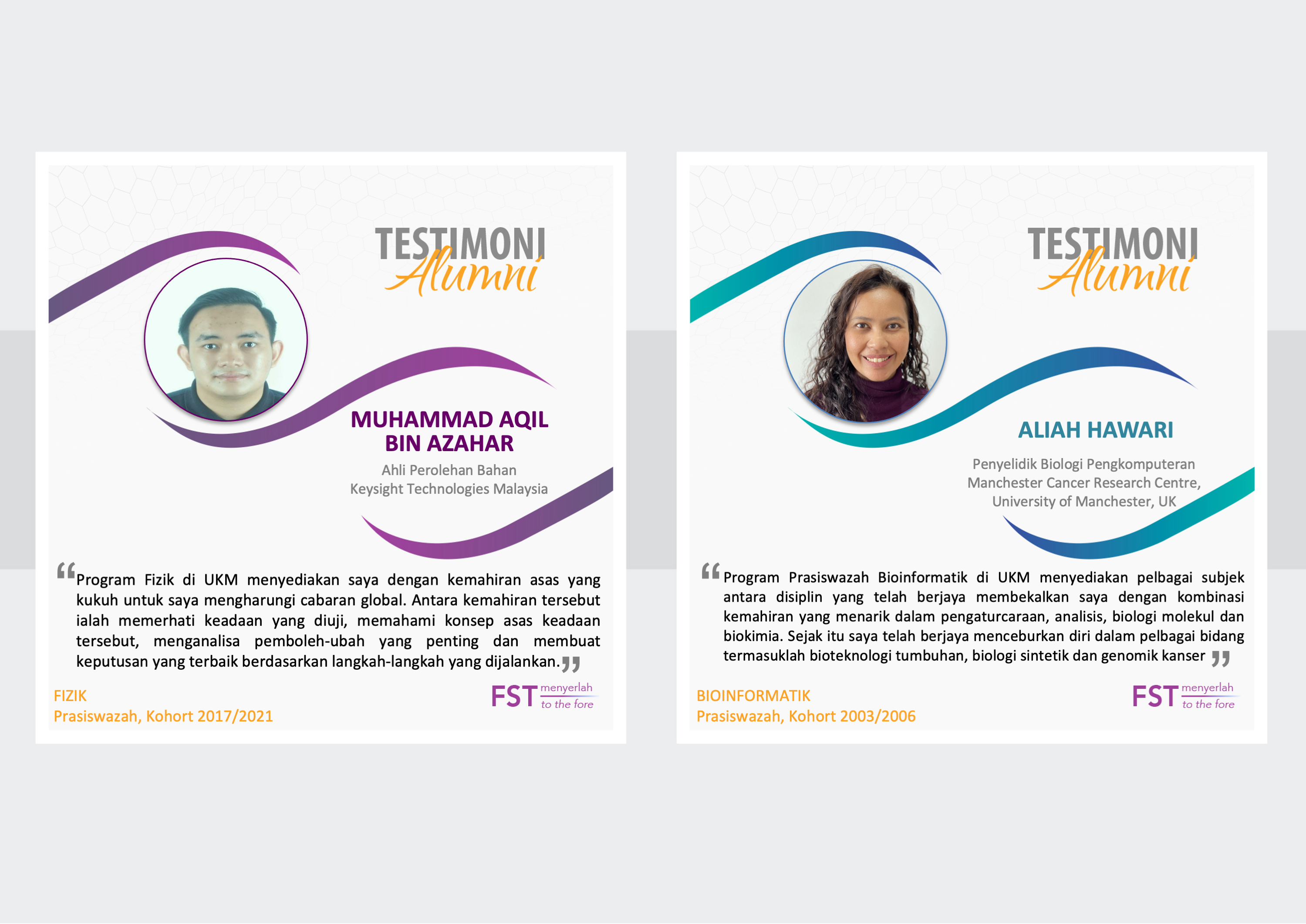 FST merupakan fakulti terbesar di UKM yang menawarkan sejumlah 18 program. Semua program kami mengintegrasikan penerokaan ilmu baharu untuk melahirkan graduan yang terpelajar, dinamik dan berpandukan aspirasi negara.