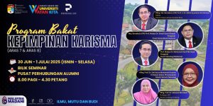 Program Bakat Kepimpinan Karisma- Aras 7 & Aras 8, anjuran Pusat Pembangunan Profesional & Kepimpinan (Profesional-UKM) merupakan program pemerkasaan, tadbir urus dan kepimpinan dalam membentuk karakter pemimpin yg berteraskan Kamus Kompetensi Kepimpinan UKM. Program ini telah berlangsung selama dua (2) hari pada 30 Jun dan 1 Julai 2025 (Isnin dan Selasa). Peserta program melibatkan para pentadbir universiti yang berada di aras 7 dan aras 8 yang terdiri daripada Pengerusi Pusat, Ketua Editor/Penyunting Jurnal (Peringkat universiti yang bertaraf Scopus/WOS) serta Penolong Dekan.