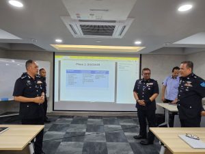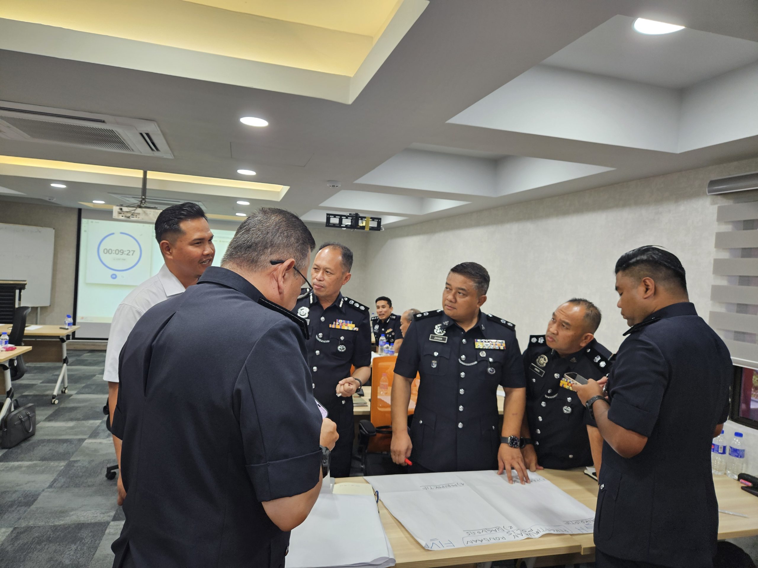 BANGI, 4 OGOS 2025 – Seramai 27 orang peserta terdiri daripada Pegawai Kanan Polis berpangkat Pemangku Asisten Komisioner Polis (ACP) dan Superintenden Polis (SUPT.) Polis Diraja Malaysia (PDRM) telah menyertai Program Sijil Profesional Kepimpinan Pengoperasian Kepolisan Siri 2/2025 yang bermula dari 11 hingga 16 Ogos 2025. Program ini merupakan hasil kerjasama strategik antara UKM dan PDRM melalui Memorandum Persefahaman (MoU) yang telah dimeterai pada Ogos 2024 yang lalu.