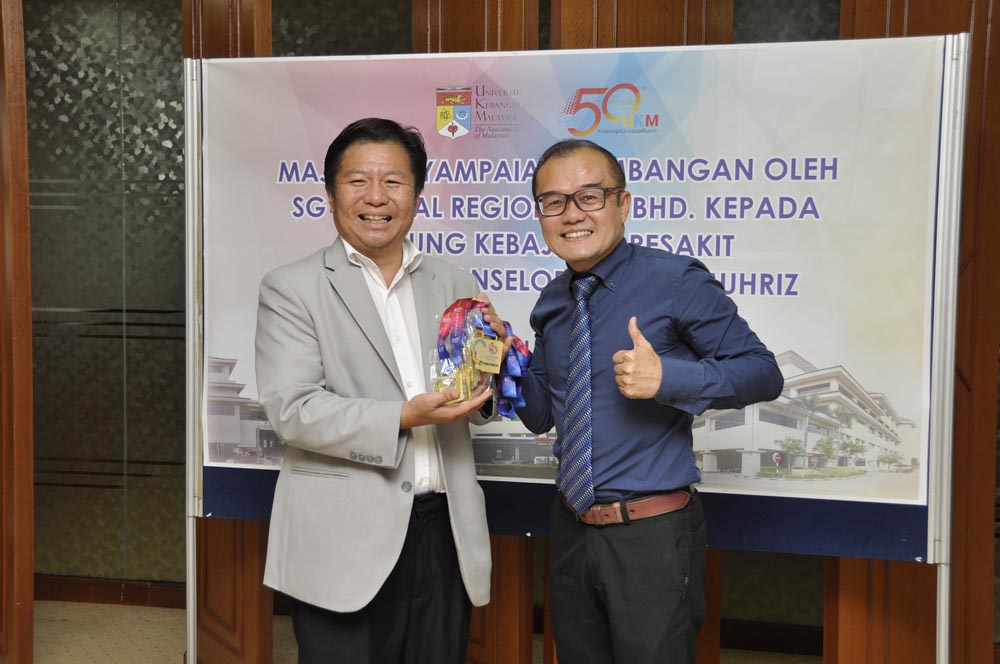 Penyerahan Mock Cheque berjumlah RM 50,992.00 telah disampaikan oleh Encik Eng See Hua, Pengarah Urusan SG Central Sdn Bhd kepada Prof. Dato’ Dr. Hanafiah Harunarashid, Pengarah Hospital Canselor Tuanku Muhriz (HCTM). Sumbangan yang diperolehi adalah hasil kutipan yang berjaya diperolehi daripada program larian amal yang dijalankan sebelum ini. Inisiatif yang dilakukan adalah untuk membantu membiayai kos alat implan pesakit-pesakit Cochlear Implant di HCTM yang kurang berkemampuan.