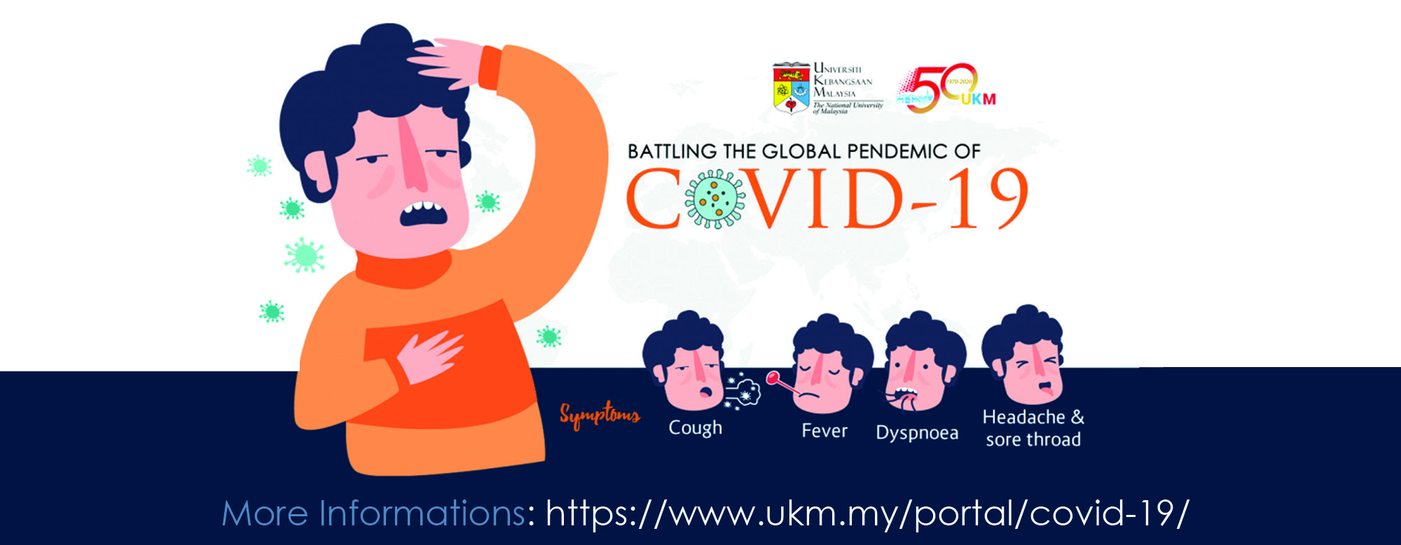 Adalah dimaklumkan Universiti Kebangsaan Malaysia telah mewujudkan halaman khas berkaitan dengan COVID-19 untuk panduan pelajar dan warga UKM. Sila layari https://www.ukm.my/portal/covid-19/