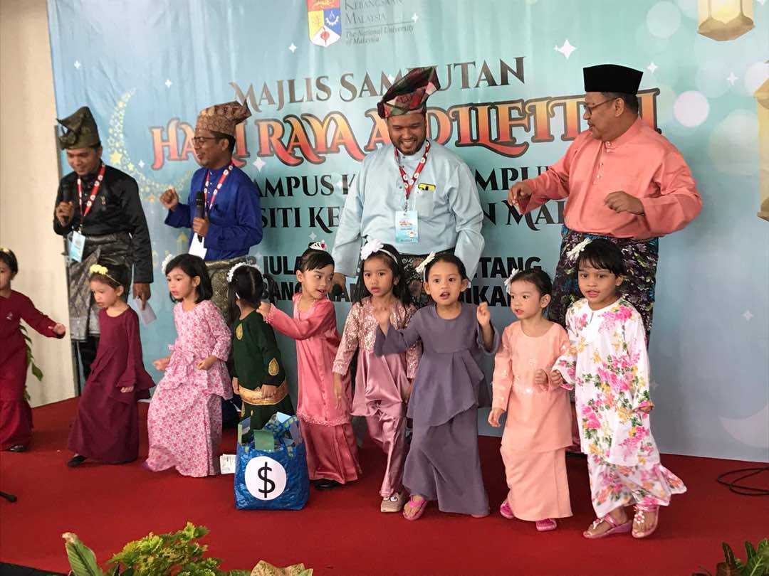 Majlis dimulakan dengan ucapan aluan daripada Pro Naib Canselor Kampus Kuala Lumpur, diikuti dengan ucapan daripada Naib Canselor UKM. Pemberian duit raya kepada kanak-kanak Taska PPUKM turut diadakan bagi memeriahkan majlis. Para tetamu jemputan dan warga kampus Kuala Lumpur yang hadir dijemput untuk menjamu selera selepas pemberian duit raya diberikan kepada semua kanak-kanak yang terlibat. Dendangan dan nyanyian lagu hari raya oleh kakitangan Kampus KL UKM dan persembahan kanak-kanak Taska PPUKM telah memeriahkan lagi majlis.