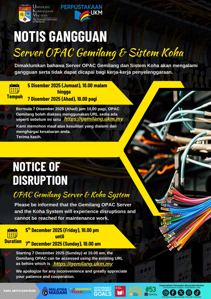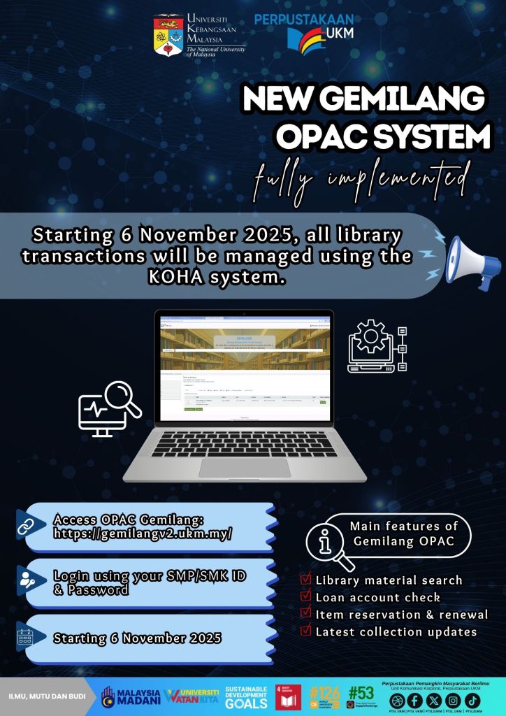Located on Level 4, Tun Seri Lanang Library. This collection houses new books published within 3 years covering multi-discipline subjects. All books in this collection can be borrowed based on the users’ category.