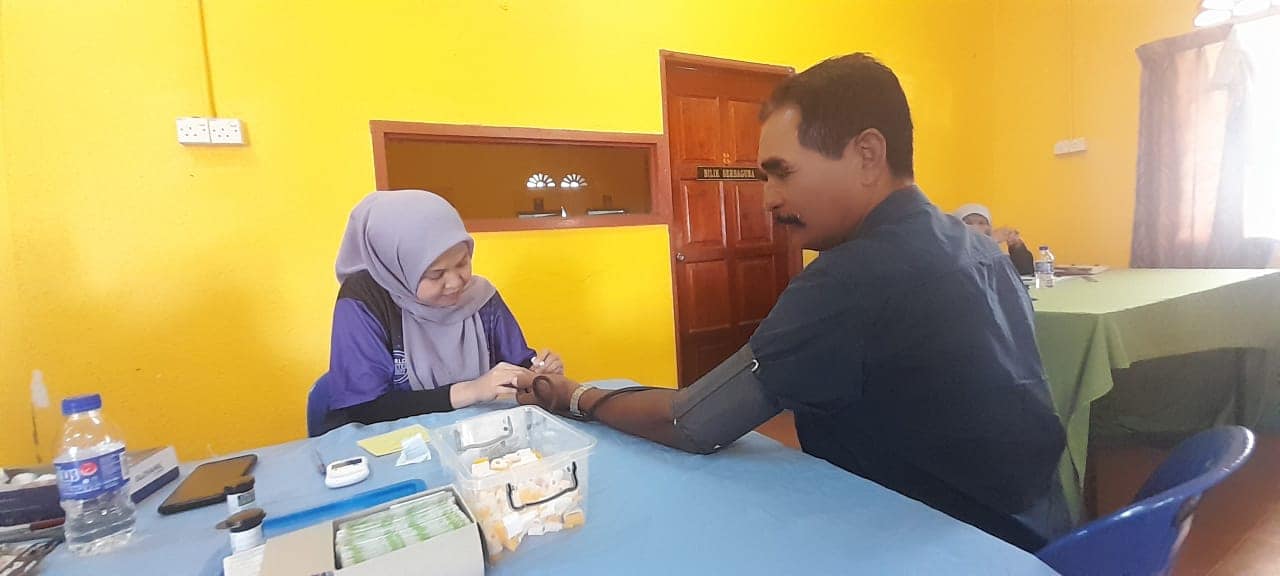 Pegawai Perubatan dan kakitangan PKU mengadakan saringan tekanan darah, pemeriksaan gula darah dan pemeriksaan berat badan serta konsultasi kesihatan kepada orang ramai yang berkunjung.Sambutan penduduk setempat terhadap pemeriksaan kesihatan ini amat menggalakkan.