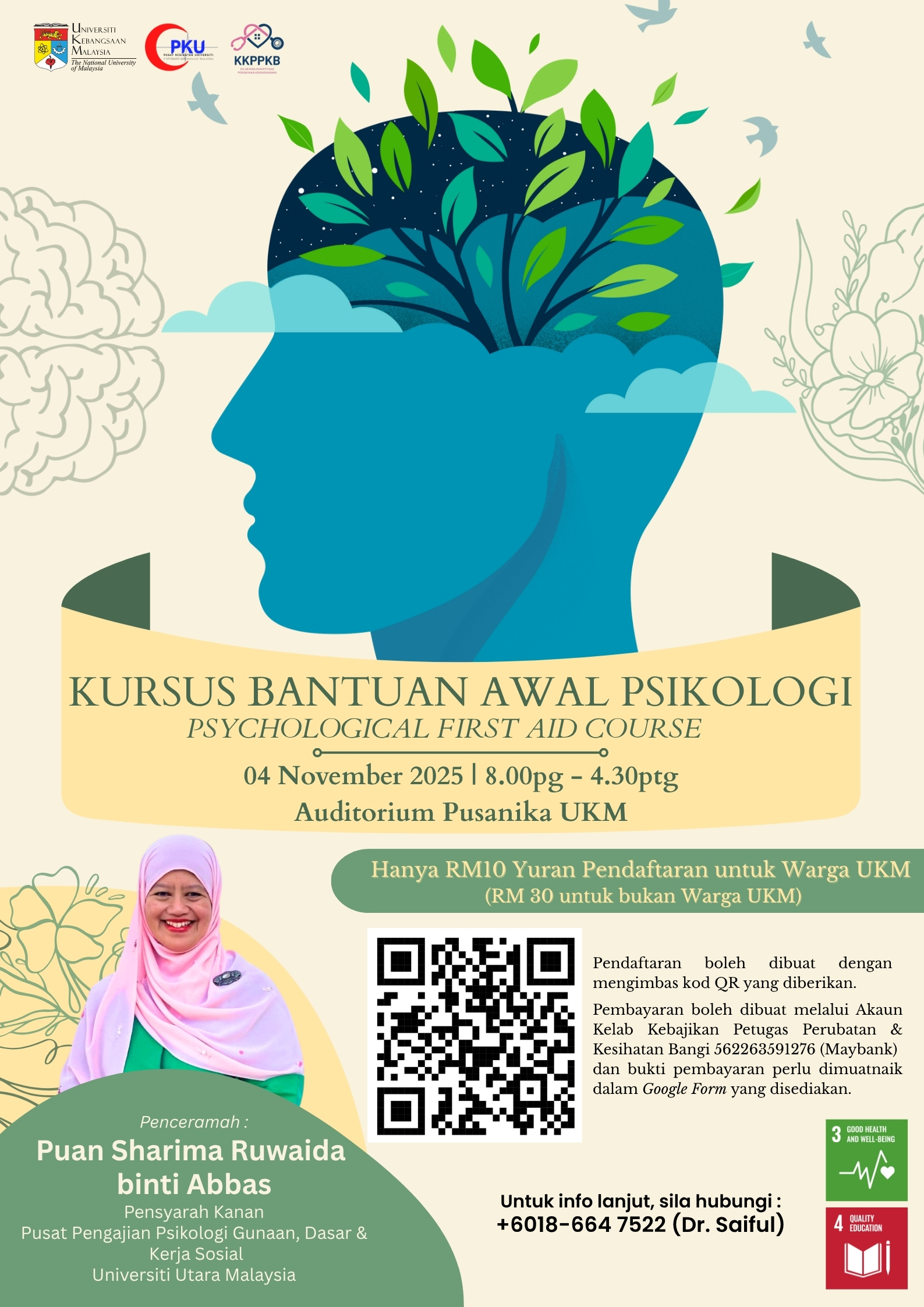 Pusat Kesihatan Universiti UKM dan Kelab Kebajikan Petugas Perubatan & Kesihatan Bangi akan menganjurkan Kursus seperti ketetapan berikut: