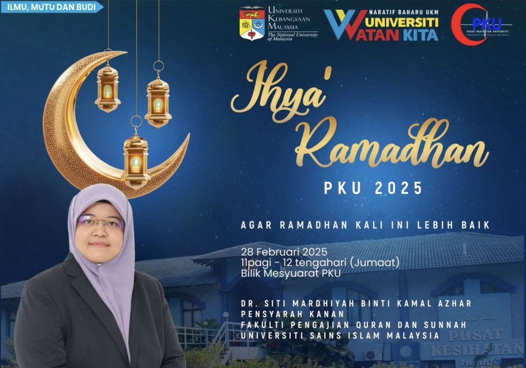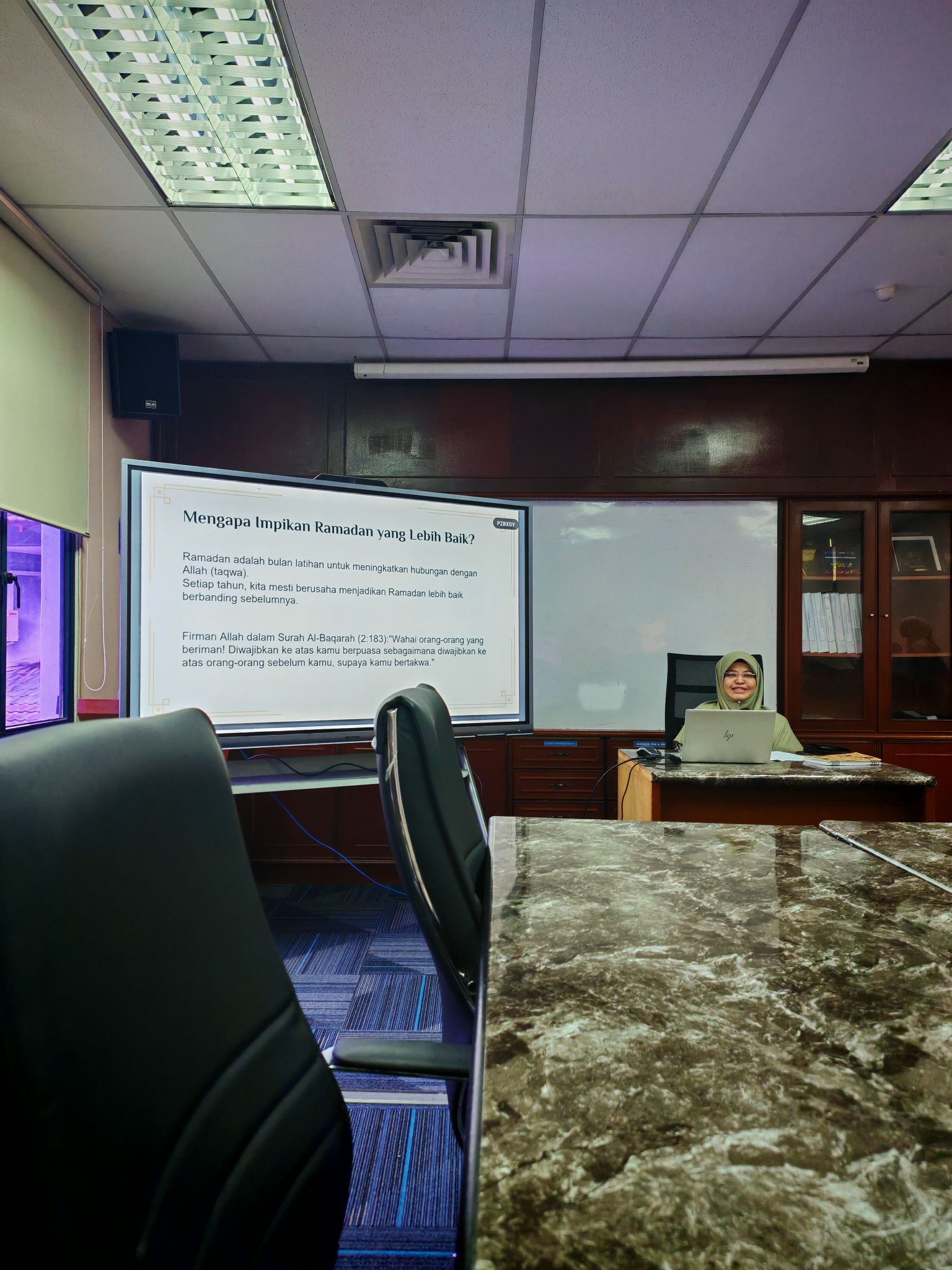 Satu program ceramah kerohanian telah disampaikan oleh Dr Siti Mardhiyah bt Kamal Azhar, pensyarah Fakulti Quran dan Sunnah USIM pada 28 Februari 2025 sempena menyambut bulan Ramadhan kepada staf PKU.