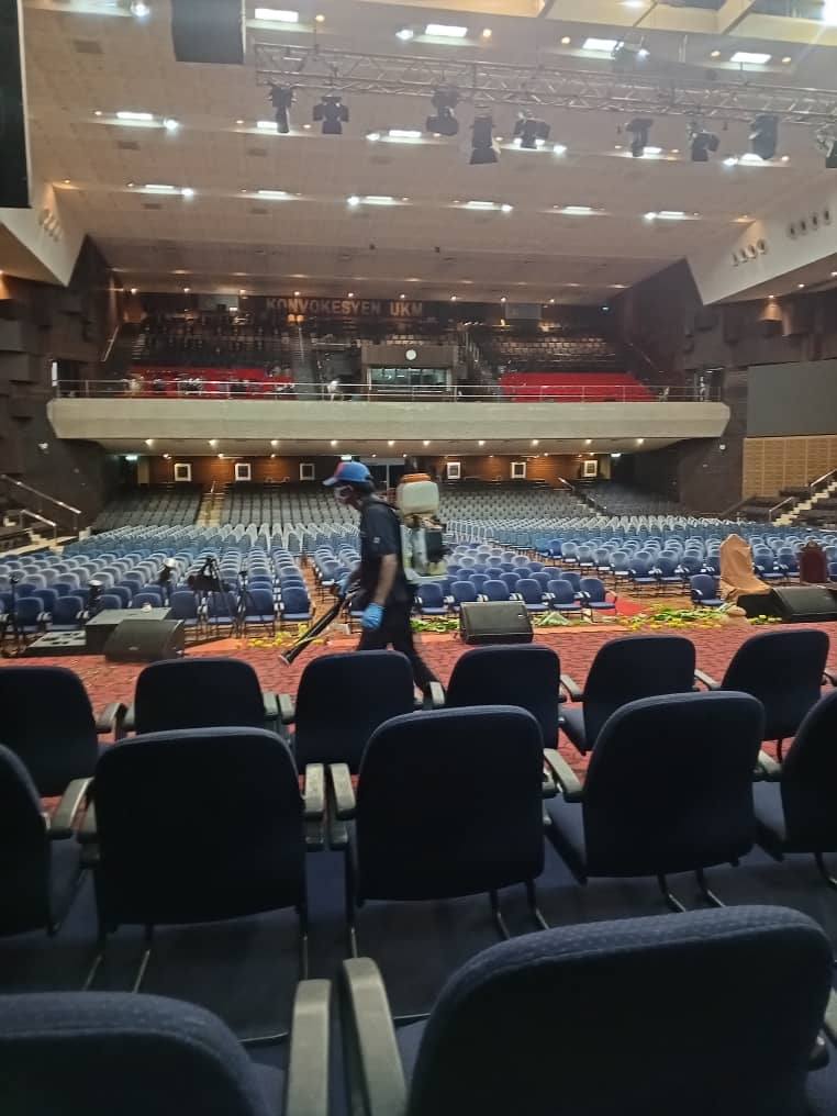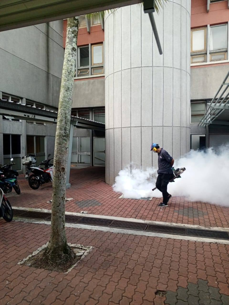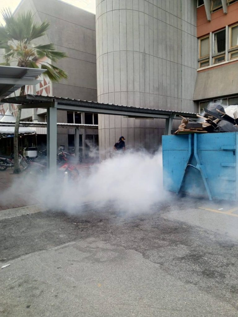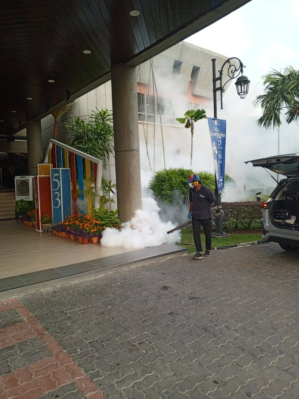 SEMBURAN KABUT (FOGGING) BAGI PERSEDIAAN MAJLIS KONVOKESYEN UKM KE-53 Semburan kabus (fogging) pengawasan denggi di sekitar DECTAR dan Panggung Seni sebagai persediaan konvokesyen UKM oleh kakitangan PKU dan kontraktor pada 20 November 2025.