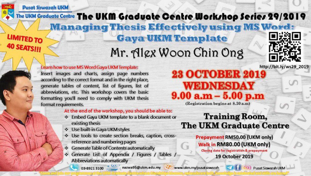 The UKM Graduate Centre Workshop Series 29/2019: Managing Thesis Effectively using MS Word: Gaya UKM Template